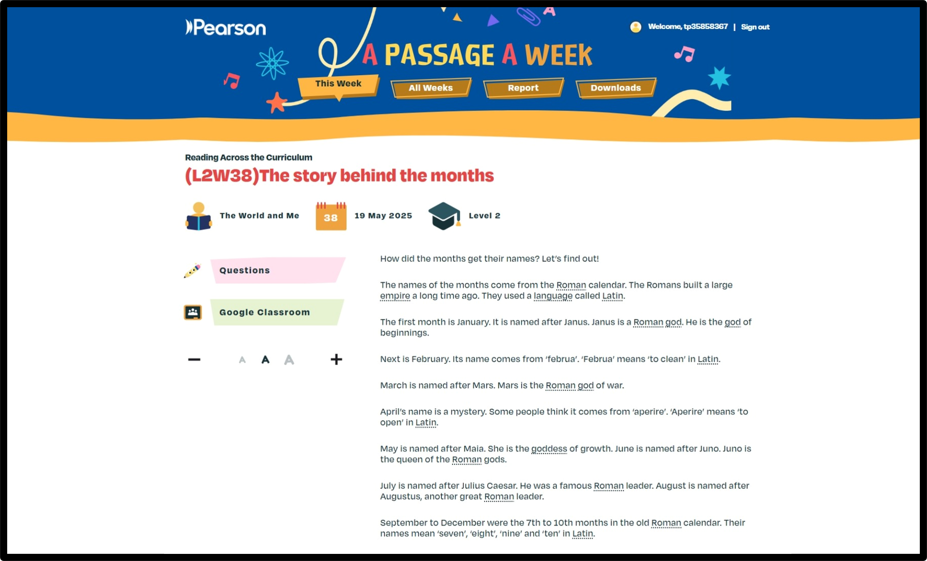 • Enjoy the same online reading experience with all-new passages on an upgraded platform with more powerful progress tracking and report generation functions. Incorporating categories for Fun Reading, RaC and national education!