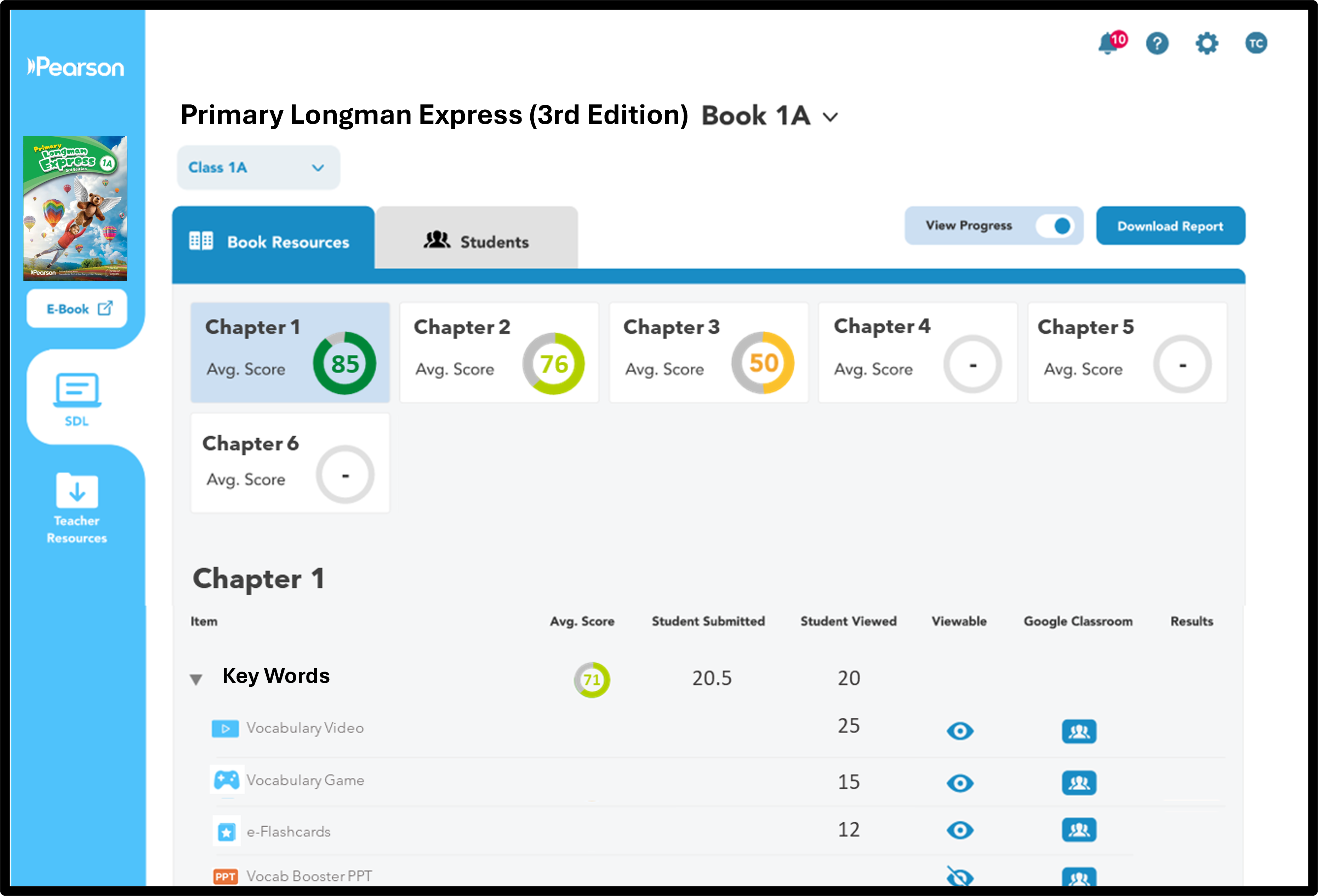 • The one-stop platform with all the resources teachers need for their everyday teaching as well as plenty of self-directed learning materials for the students. Teachers can assign resources to the students and keep track of their learning progress with real-time reports.